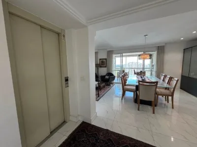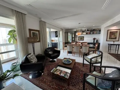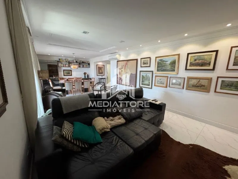 A planta original conta com 4 dormitórios, atualmente configurado com 3 dormitórios, sendo 3 suítes, com um dos quartos integrado para ampliação da sala, proporcionando um ambiente social amplo, sofisticado e bem iluminado.