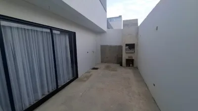 Área externa com churrasqueira com possibilidade de instalar pergolado ou área gourmet coberta.