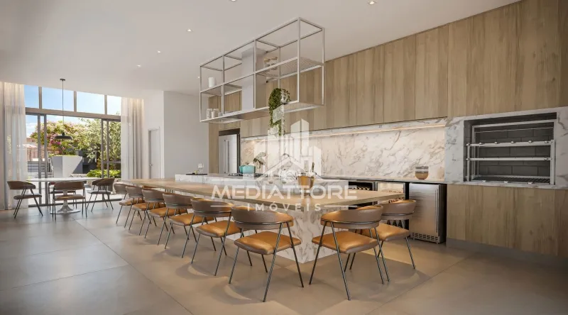 A sala de estar, generosa e iluminada, cria um ambiente perfeito para receber com elegância ou desfrutar momentos de tranquilidade.