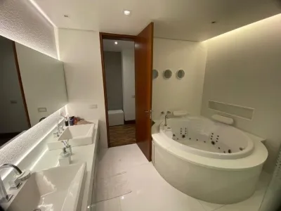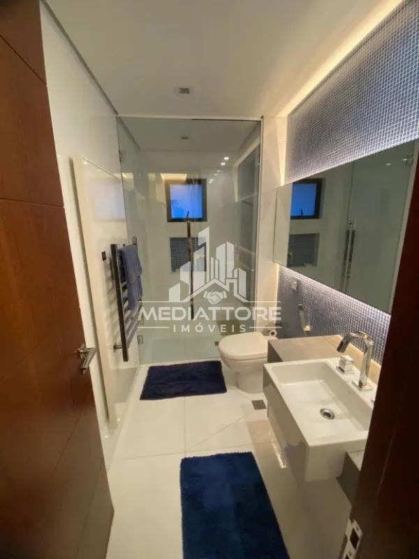 Possui excelente iluminação natural devido as grandes janelas e portas de vidros. Fachada moderna, paredes duplas com tratamento térmico, esquadrias com vidros duplos, automação na iluminação, calefação por piso radiante em toda a residência a solar e a gás, casas de máquinas com aproveitamento de águas pluviais, piscina com aquecimento por placas solares, sala de home theater, suíte master com amplo e duplo walk-in closet, banheiro com 2 pias e banheira com hidro/SPA.